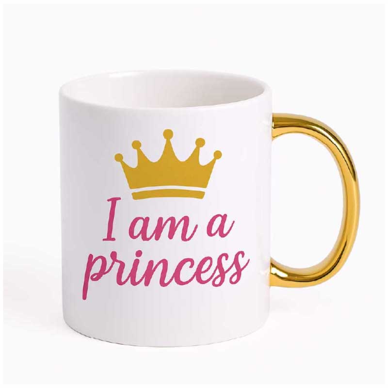 Cana din ceramica alba, cu toarta auriu metalizat, personalizata cu logo-ul, imaginea si/sau textul dumneavoastra.